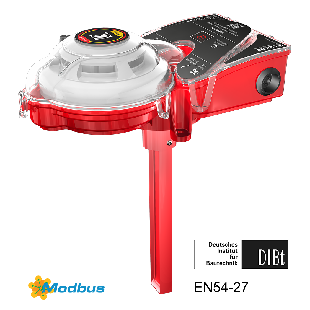 Über MODBUS lassen sich der Status des Rauchmelders, der Verschmutzungswert und der Alarm bei niedrigem Luftdurchfluss anzeigen.